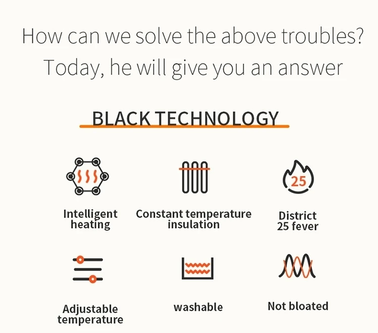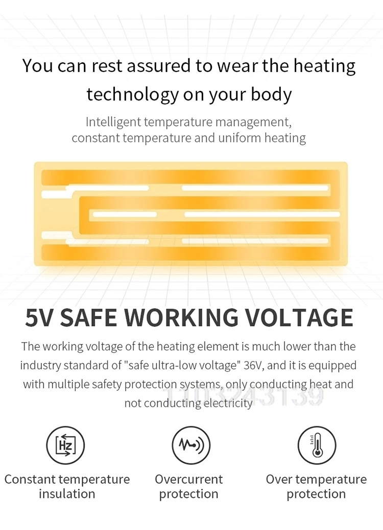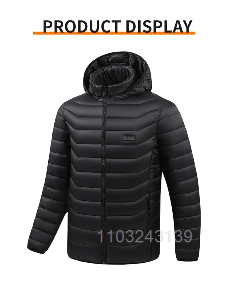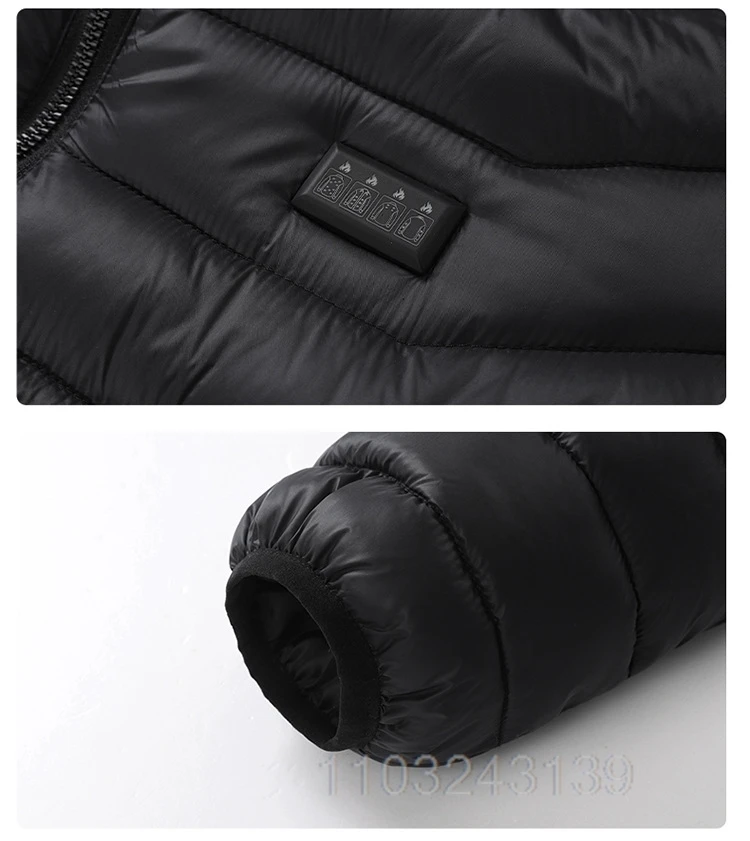 1.Uniform and Comfortable Heat Distribution: Experience ultimate comfort with the 9-zone heating system of this intelligent heating coat. The heat is evenly distributed across 9 zones, ensuring a consistent and comfortable body sensation. In particular, the critical areas prone to coldness, such as the neck and lower back, are targeted for maximum warmth. Stay cozy and enjoy a well-distributed heat throughout your outdoor activities. 2.Longer Heating Time and Superior Warmth: Stay warm for extended periods with this heating jacket. Designed to provide exceptional warmth, this jacket boasts a longer heating time compared to traditional options. The strategically placed heating elements effectively lock in warmth, keeping you cozy even in chilly conditions. Embrace the superior insulation provided by this heating jacket and relish in prolonged warmth during your outdoor adventures. 3.Intelligent Temperature Control: Take control of your comfort with the intelligent temperature control feature of this heated jacket. With a simple and intuitive operation, long-press the power button for 3 seconds to turn on the jacket, then easily adjust the temperature according to your preference by gently pressing the button. The blue light indicates an automatic constant temperature at 39°C, white light at 45°C, and red light at 55°C. Enjoy personalized warmth tailored to your needs and weather conditions. 4.Safe Low-Voltage Design: Prioritize safety with the low-voltage design of this heated insulated jacket. Operating at a safe 5V voltage, significantly lower than the human body's safety voltage of 36V, this jacket ensures reliable and secure usage. Feel confident and protected while staying comfortably warm, knowing that safety is a top priority in its design. 5.Practical Features: Elevate your style and warmth with the fashionable design of this heated zip up coat. The standing collar provides extra protection and comfort for your neck, enhancing the overall warmth of the jacket. The spacious zipper pockets offer convenient storage for personal items, allowing you to carry essentials securely. The dual-control switch allows you to adjust the temperature according to your needs, ensuring personalized comfort.