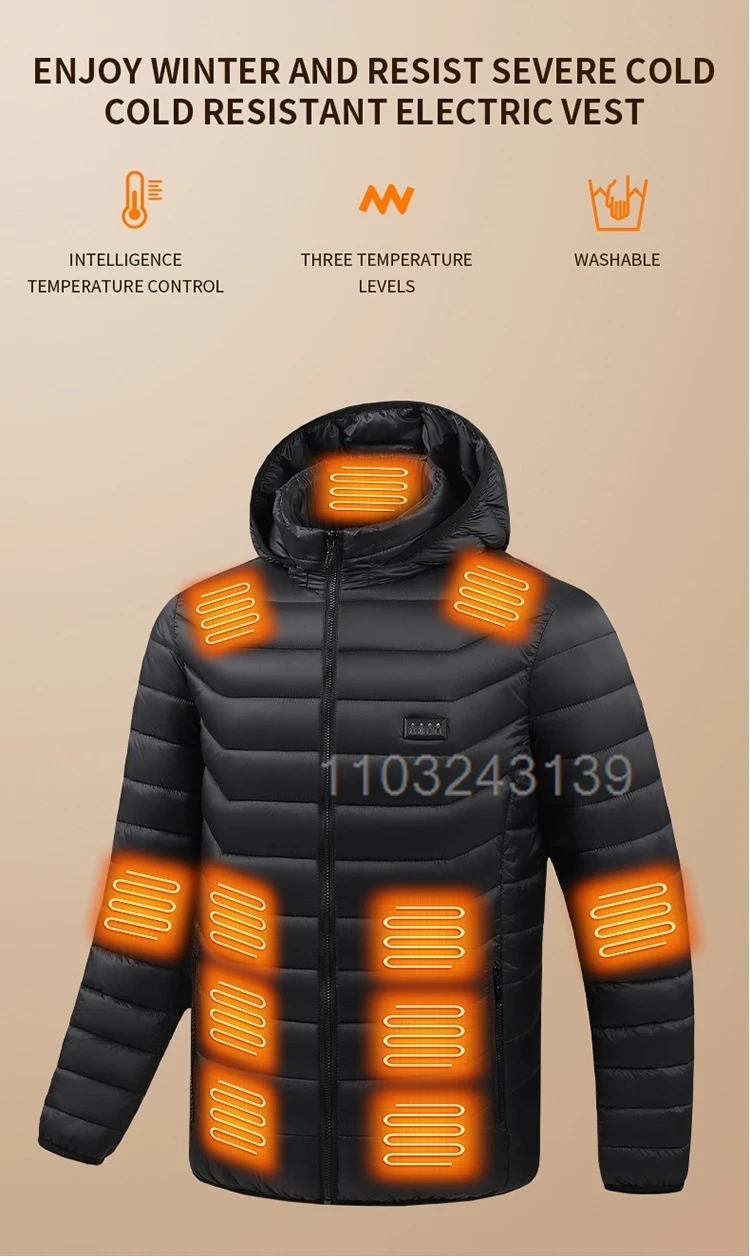 Stay warm and unstoppable with the 9 Heated Area Warming Jacket - your ultimate shield against the cold! This USB Heated Outdoor Jacket promises unmatched functionality with its nine-zone heating system, expertly engineered to distribute heat evenly to your neck and lower back. With intelligent temperature control, you can switch between 39°C, 45°C, and 55°C settings for personalized comfort, all while operating on a safe 5V low-voltage design. Conquer the outdoors confidently, knowing you have a long-heating time polyester insulated jacket. Featuring a practical standing collar and spacious zipper pockets, it's perfect for hiking or skiing adventures. Enjoy free shipping from the U.S. and never let the cold keep you indoors again!