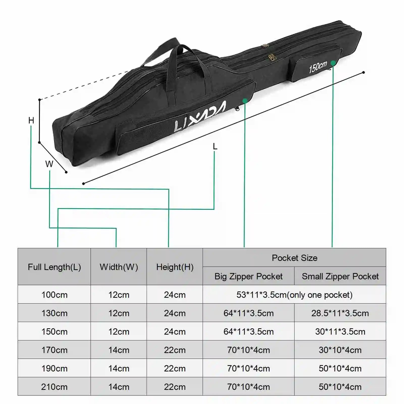 Lixada 170cm Fishing Bag Portable Folding Fishing Rod Reel Bags Fishing Pole Gear Tackle Tool Carry Case Carrier Storage