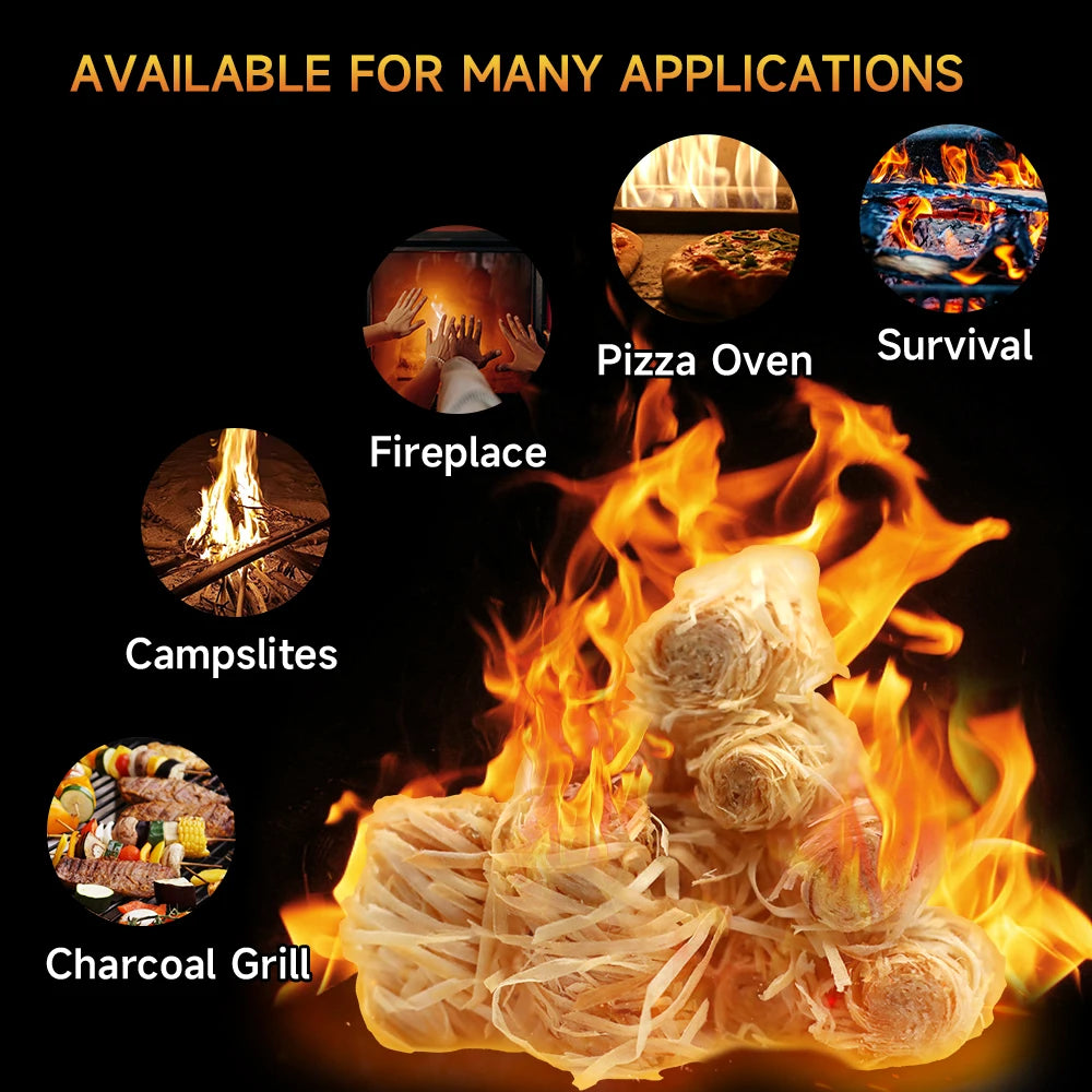 1、Natural Igniter: Each bag contains 50-200 PCS Natural igniter. Only 1 Flame Starter is required for starting a flame when used with kindling. Perfect for lighting Charcoal on your BBQ, no need for petroleum fluid any more.