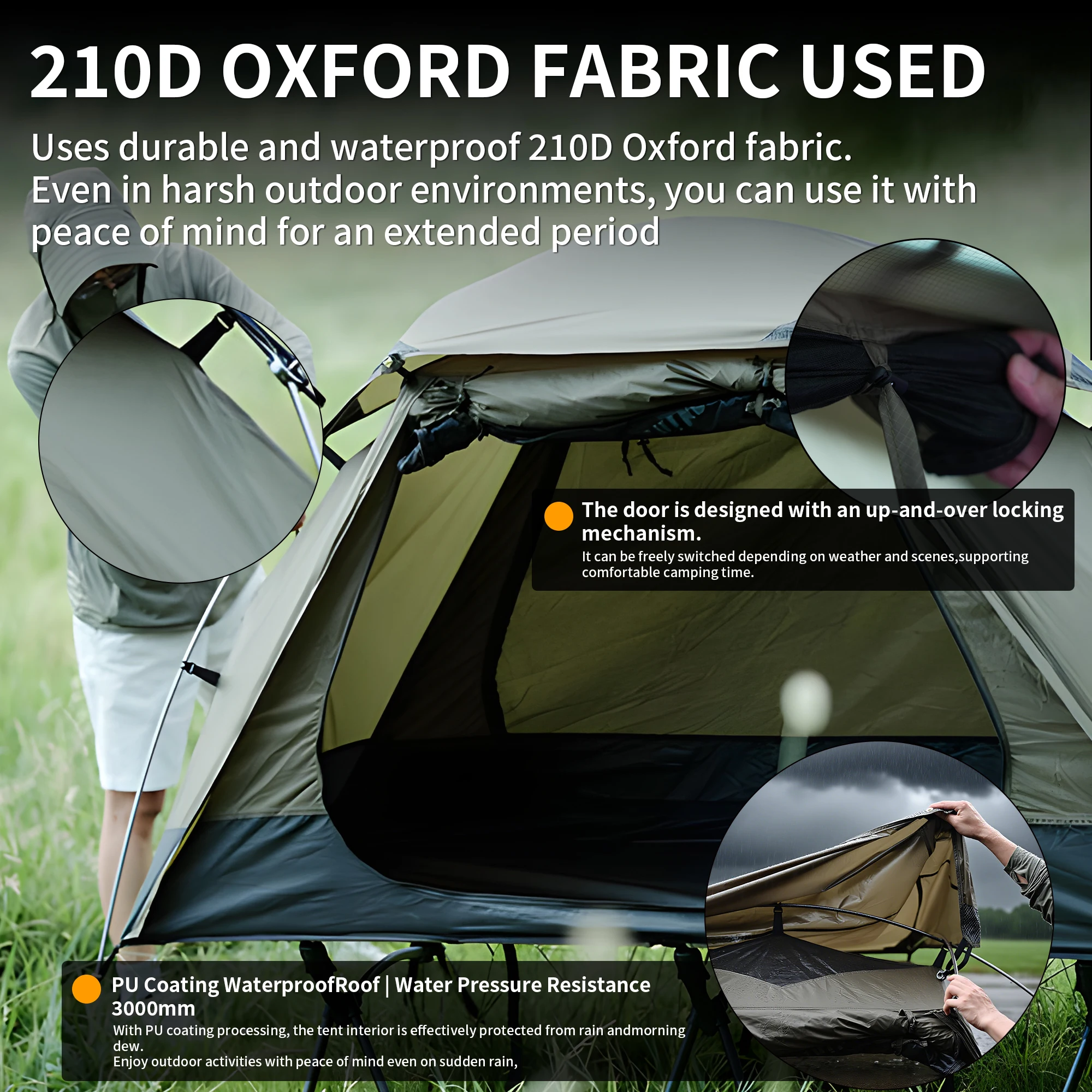 🎯 【Instant Pop-Up Design, No Skills Needed】 Forget complicated pole assemblies. Our tent features an automatic hydraulic system. Just take it out and throw it into the air, it sets up in seconds! Perfect for beginners or when you need shelter quickly.