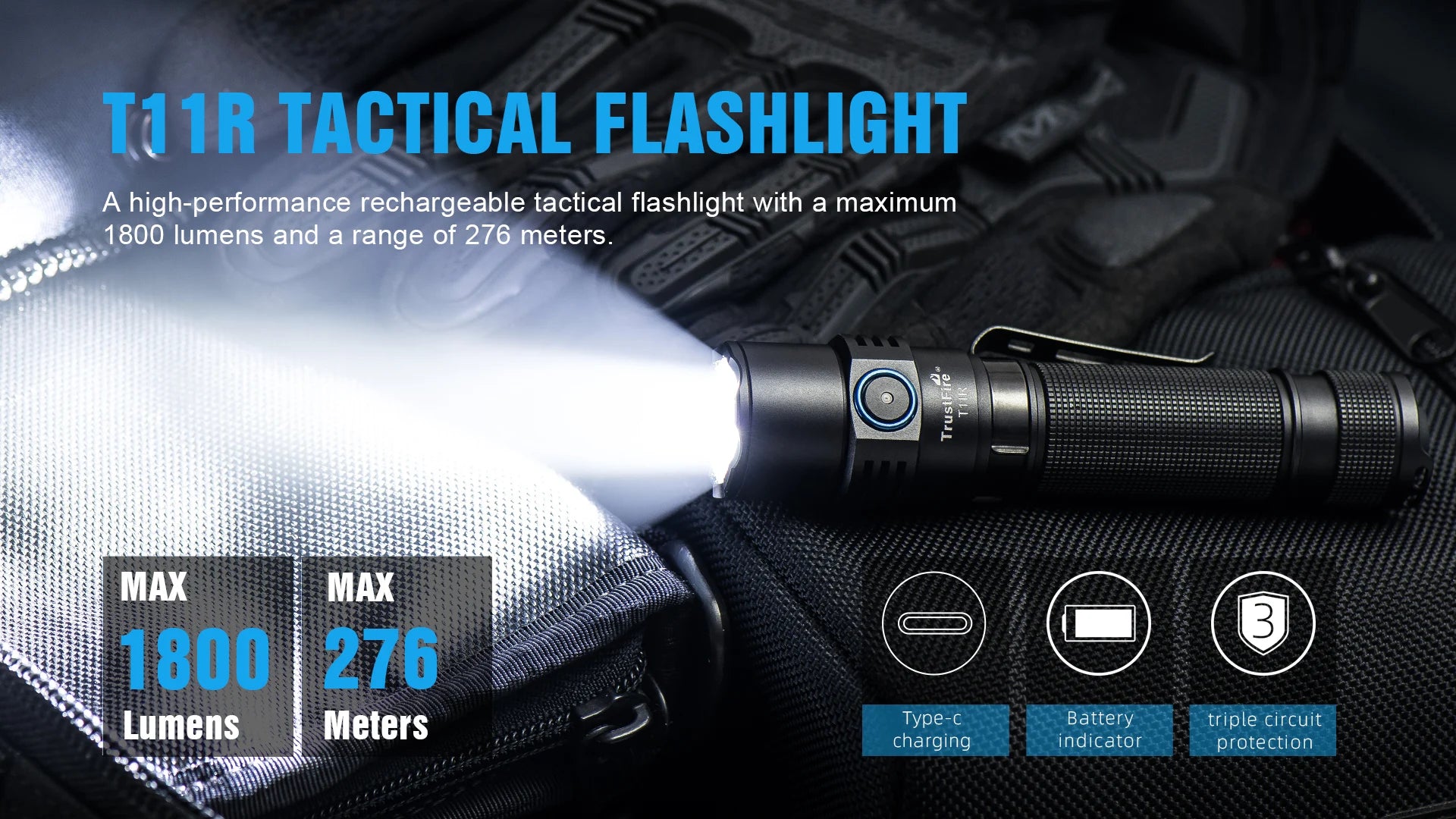 Trustfire T11R Tactical Led Flashlights 1800 Lumen Powerful Type C USB Rechargeable Torch Lamp 18650 High Power Lamp Dual Switch