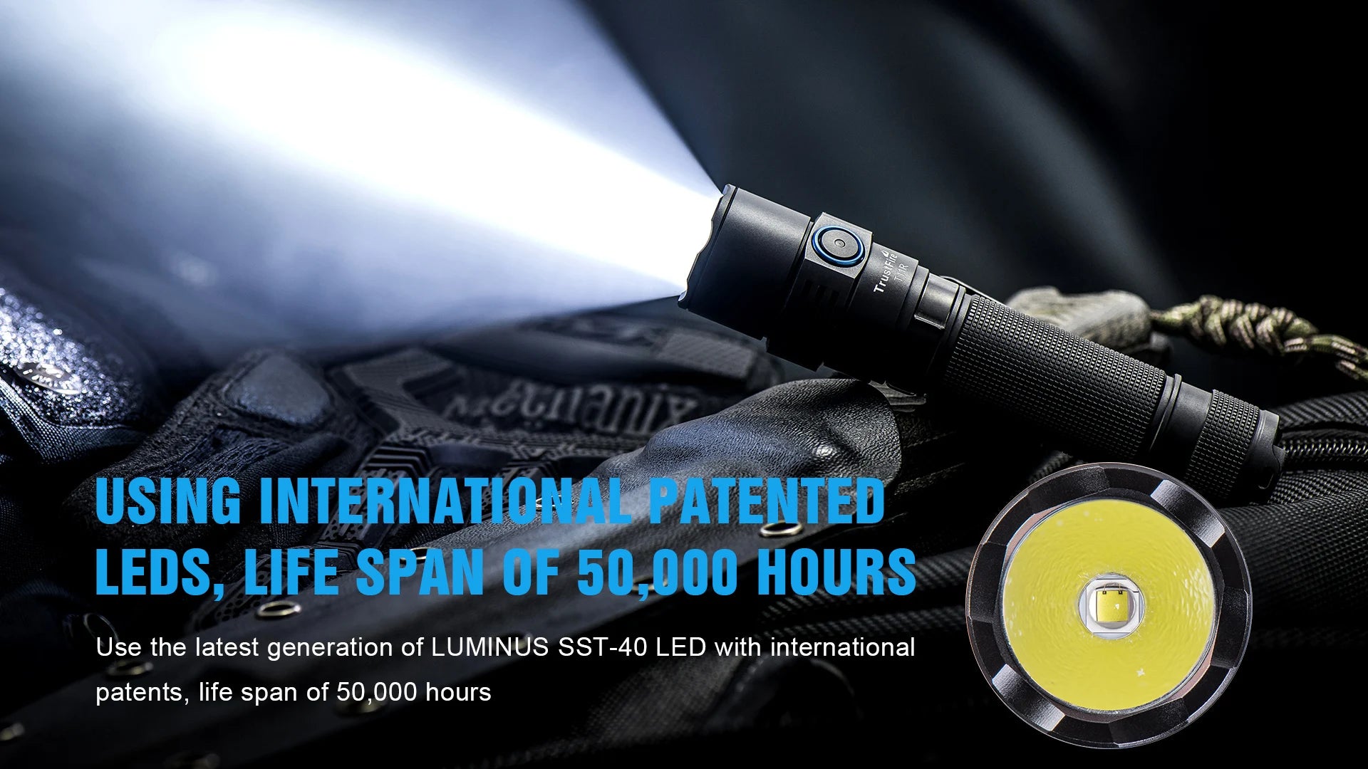 Use the latest generation of LUMINUS SST-40 LED with international patents, life span of 50,000 hours